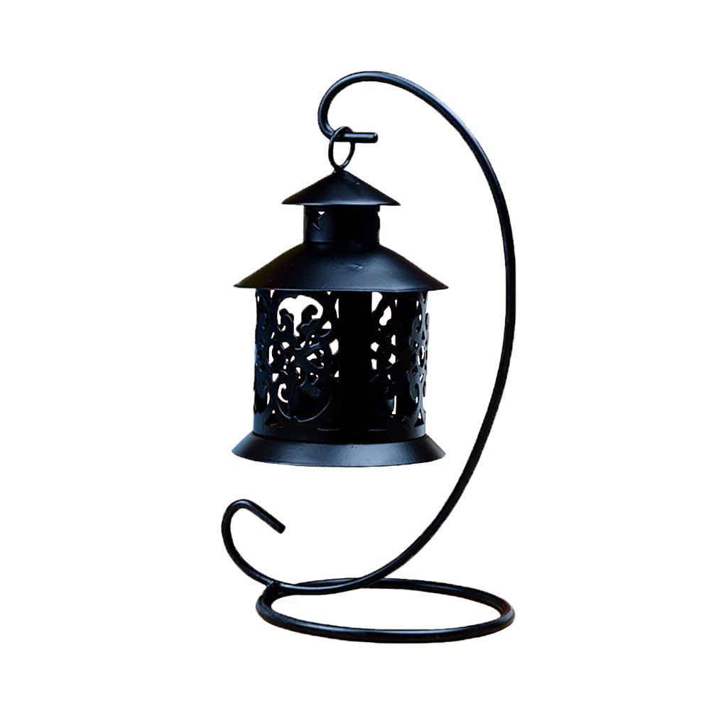 Jarown Retro Metal Iron Hanging Candle Lantern Holder Stand