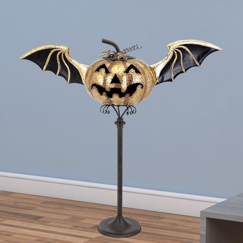 Benjara Spectacular Eddy Jack O Golden And Black Rustic Lantern