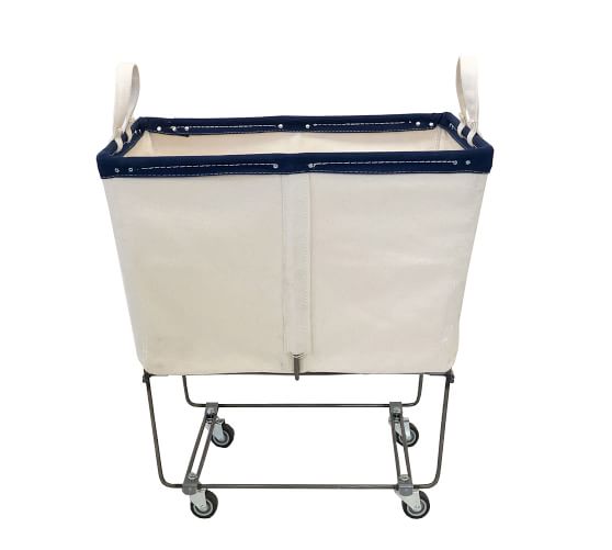 Large Elevated Canvas Steel Basket With Wheels Pottery Barn