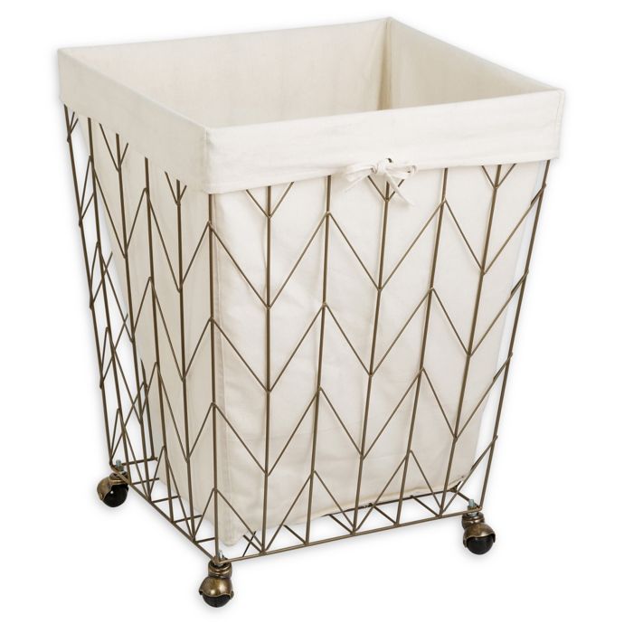 Mainstays Square Chevron Pattern Metal Hamper With Wheels Gold And Natural Walmart Com Walmart Com