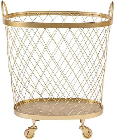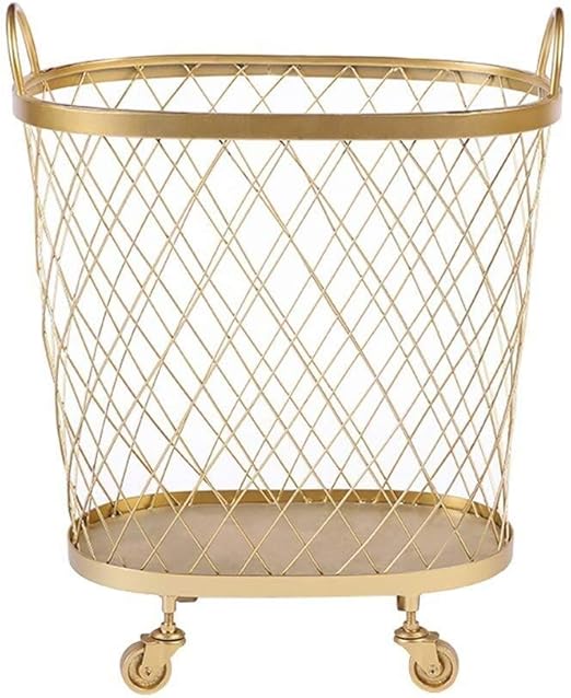 Amazon Com Large Round Gold Metal Mesh Hamper Laundry Basket With Wheels Handles 15 7 X 16 7 Home Kitchen