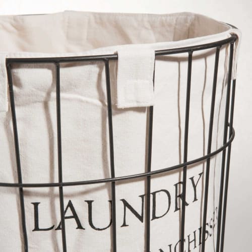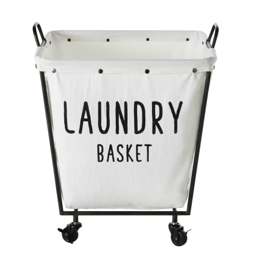 White Cotton And Black Metal Wheeled Laundry Basket Laundry Maisons Du Monde