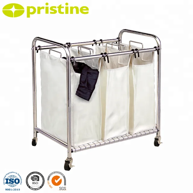 Cheap 3 Compartment Laundry Sorter Metal Washable Foldable Laundry Hampers Basket With Wheels Buy Metal Laundry