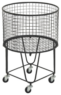 Shop Large Round Black Metal Hamper Basket With Wheels 17 X 25 On Sale Overstock 21426694