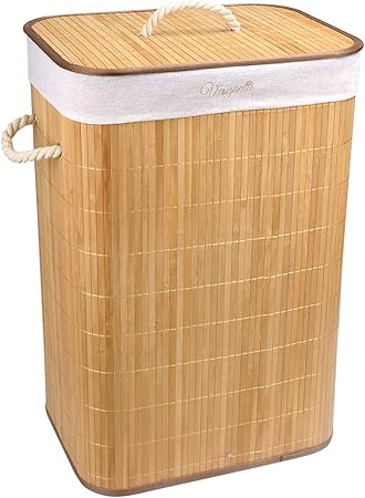 Amazon Com Homshoo Bamboo Laundry Hamper With Lid Bamboo Laundry Basket 105l Dirty Clothes Storage Baskets Foldable Rectangular Xl Home Kitchen