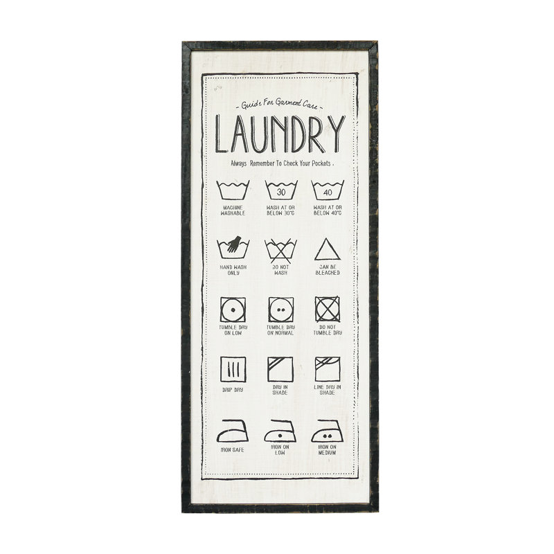 Made of thin metal this lovely sign offers a white finish black border and black laundry care symbols with their explanations directly them.