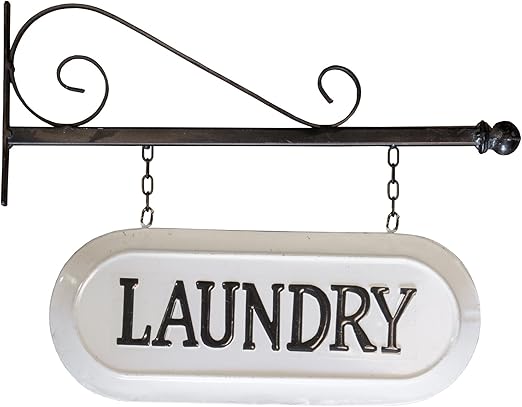 Vipssci Wall Mounted Bracket With Hanging White Metal Laundry Sign