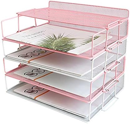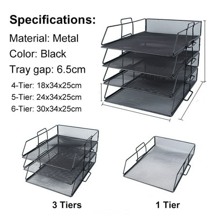Stackable Paper Tray Desk Organizer 4 Tier Metal Mesh Letter