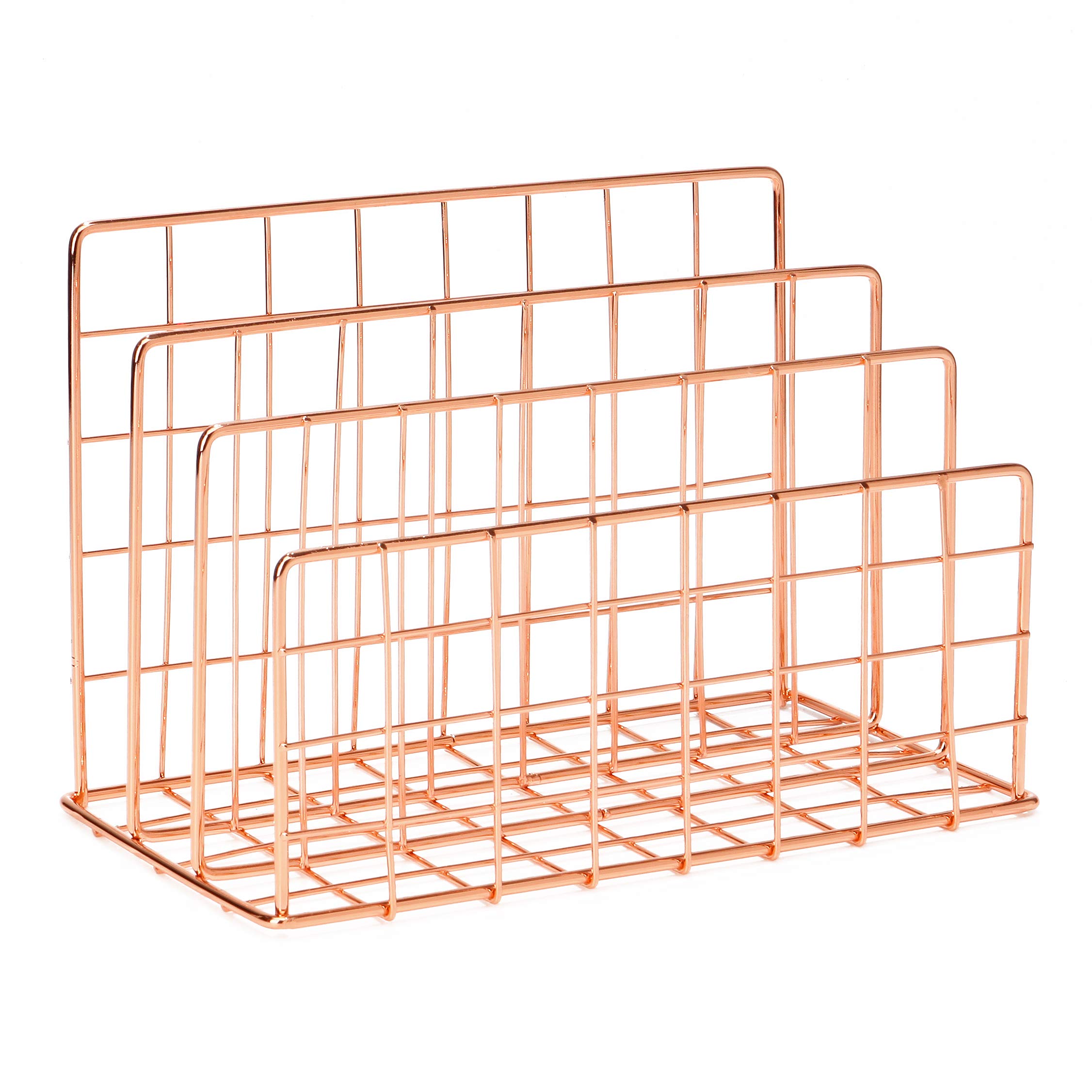 Desktop Mail Organizer 3 Slot Metal Wire Letter Organizer Rose