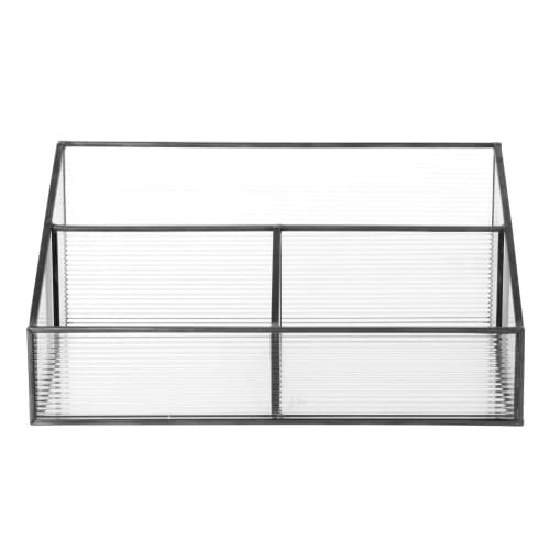 Ribbed Glass And Black Metal Letter Organiser Maisons Du Monde