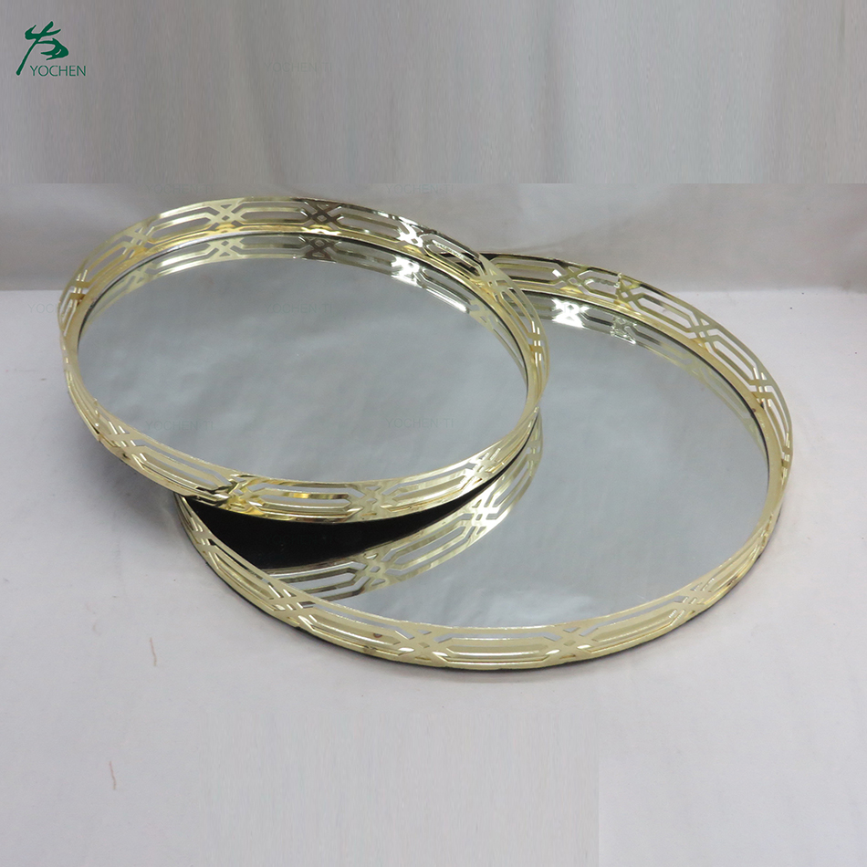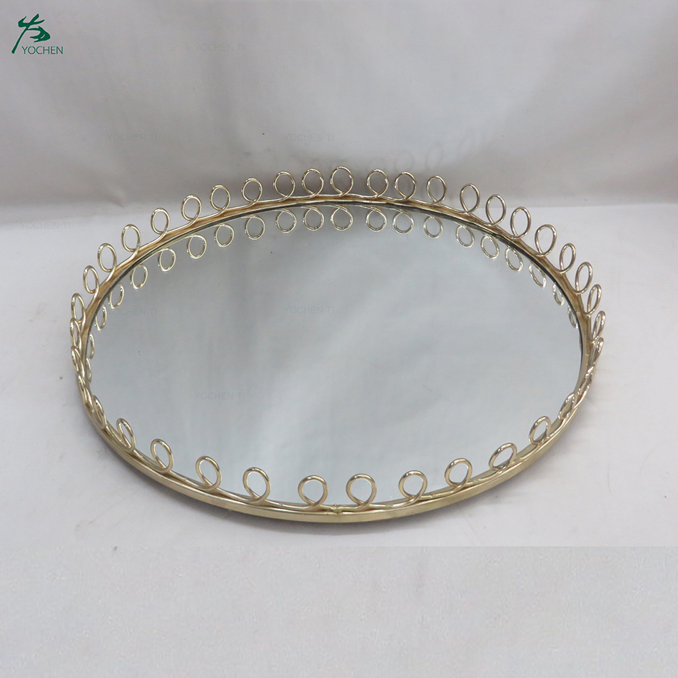 Round Loop Mirror Tray Round Metal Mirrored Tray In Gold
