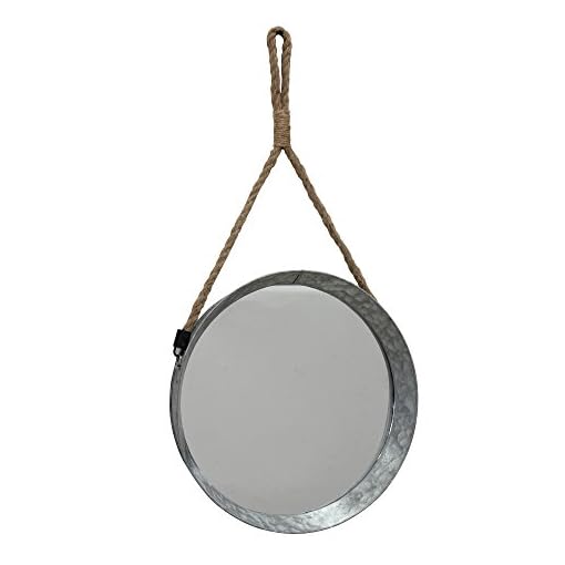 Stonebriar Rustic Round Galvanized Metal Mirror With Rope Hanging