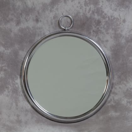 Small Round Mirror Aluminium Silver Polished Metal Loop Bathroom