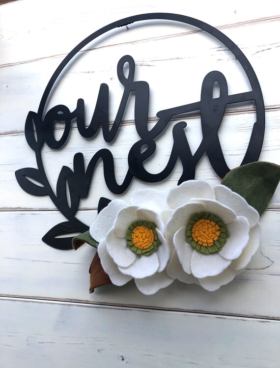 Our Nest Magnolia Wreath Metal Our Nest Sign Magnolia Felt Etsy