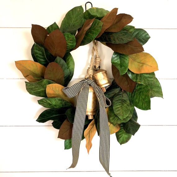 Bells Wreath Magnolia Wreath Winter Wreath Etsy