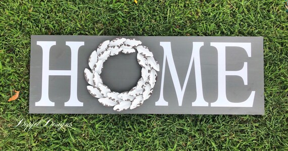 Grey Wooden Home Sign With Metal Magnolia Wreath Etsy