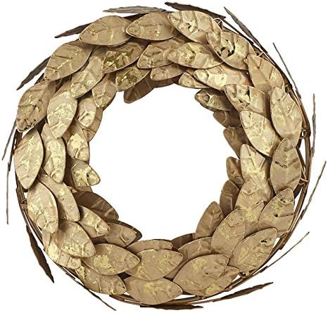 Amazon Com Evergreen Gold Metal Magnolia Leaf Wreath 10 Home