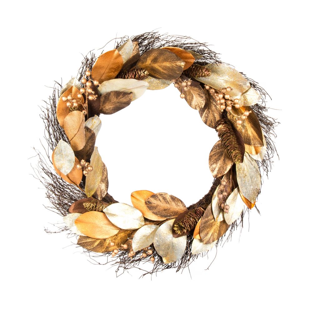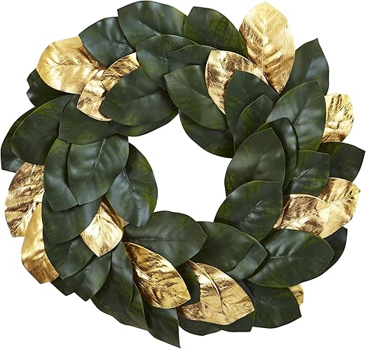 Amazon Com Nearly Natural Golden Leaf Magnolia Wreath 22 Home