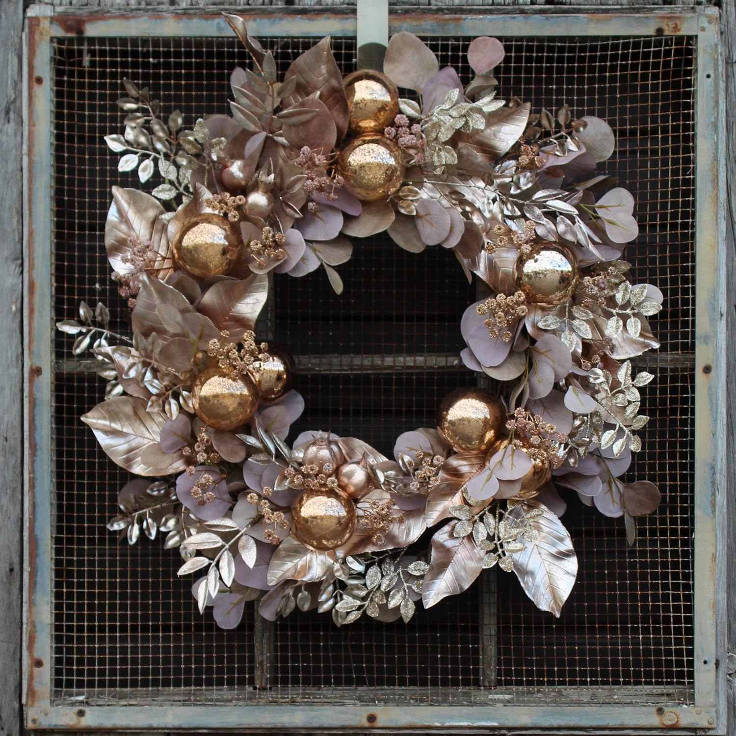 Gilded Magnolia 14 In Wreath Rose Gold 2153d9901 The Home Depot