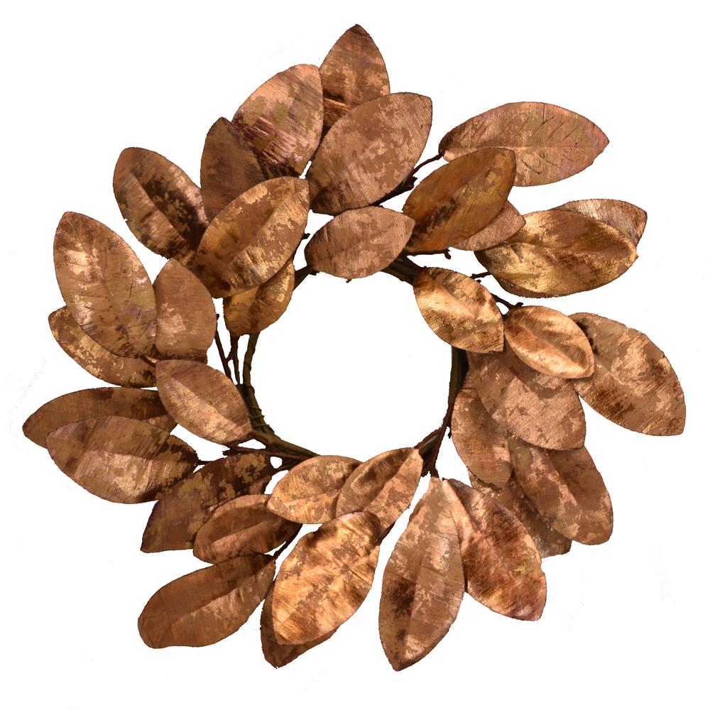 Huashen 24 Inch Golden Copper Color Metal Magnolia Leaf Christmas