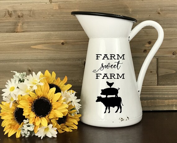Farmhouse Metal Milk Pitcher White Farm Sweet Farm Enamel Etsy