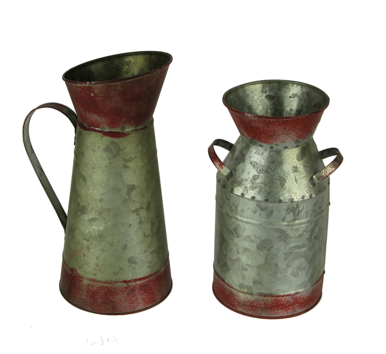 Metal Farmhouse Milk Pitcher With Handle Set Of 2 Emory Valley