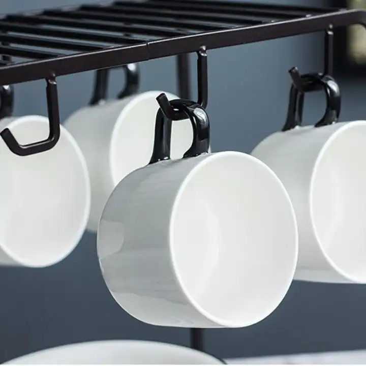 Jual Cup Holder Metal Drying Mug Rack With 6 Hook Hanger Stand