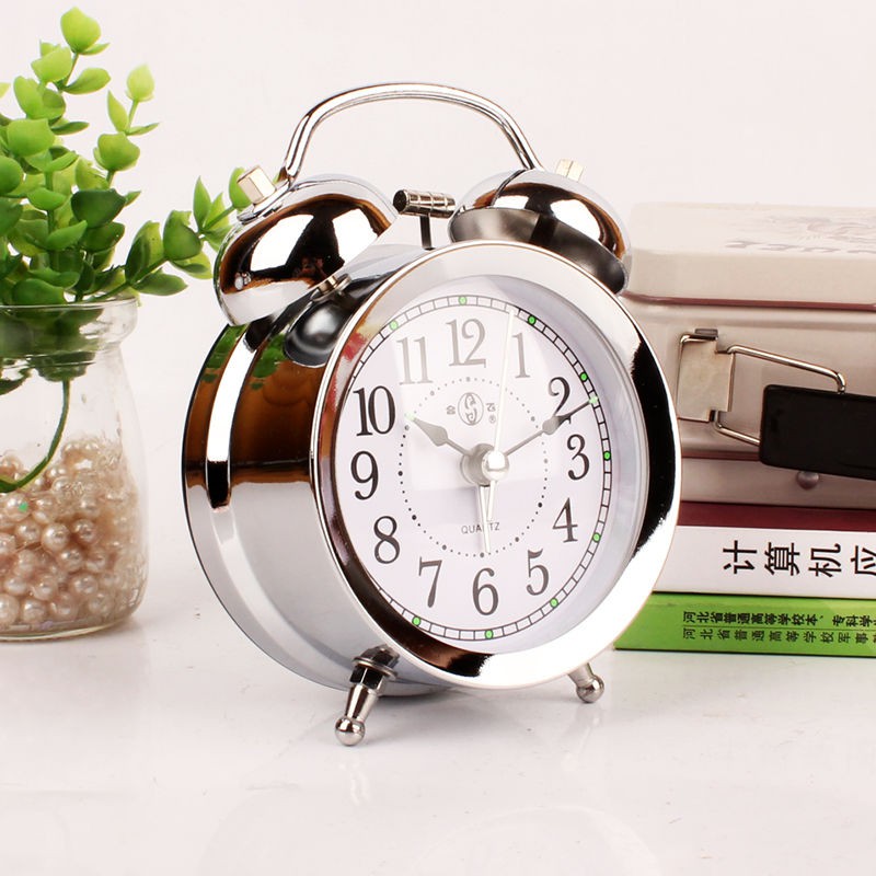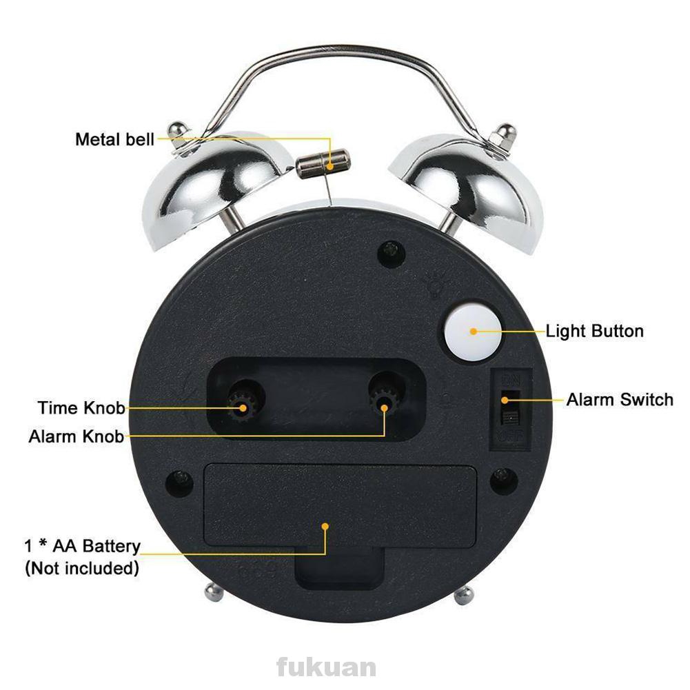 Jual 3 Inch Metal Double Bell Alarm Clock Bedside Night Light