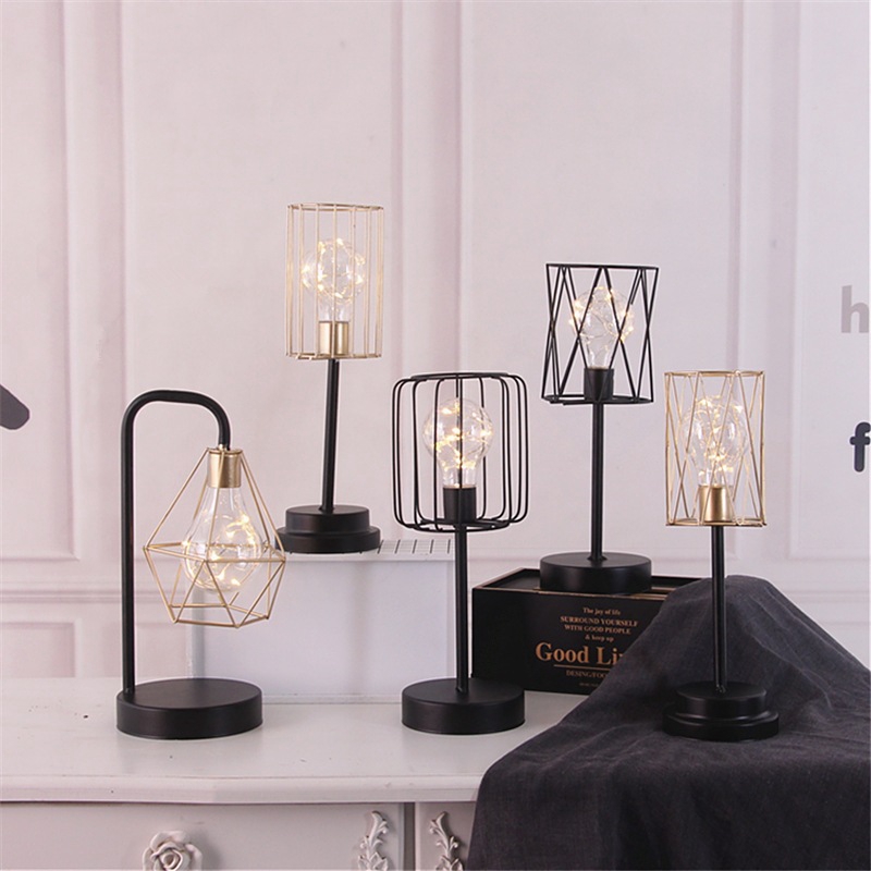 Retro Industrial Metal Cage Table Lamp Vintage Desk Night Light