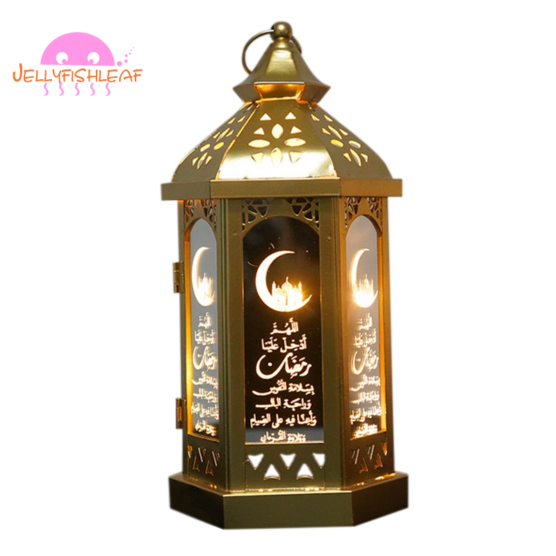 Eid Mubarak Led Lights Metal Lantern Lamp Battery Night Light