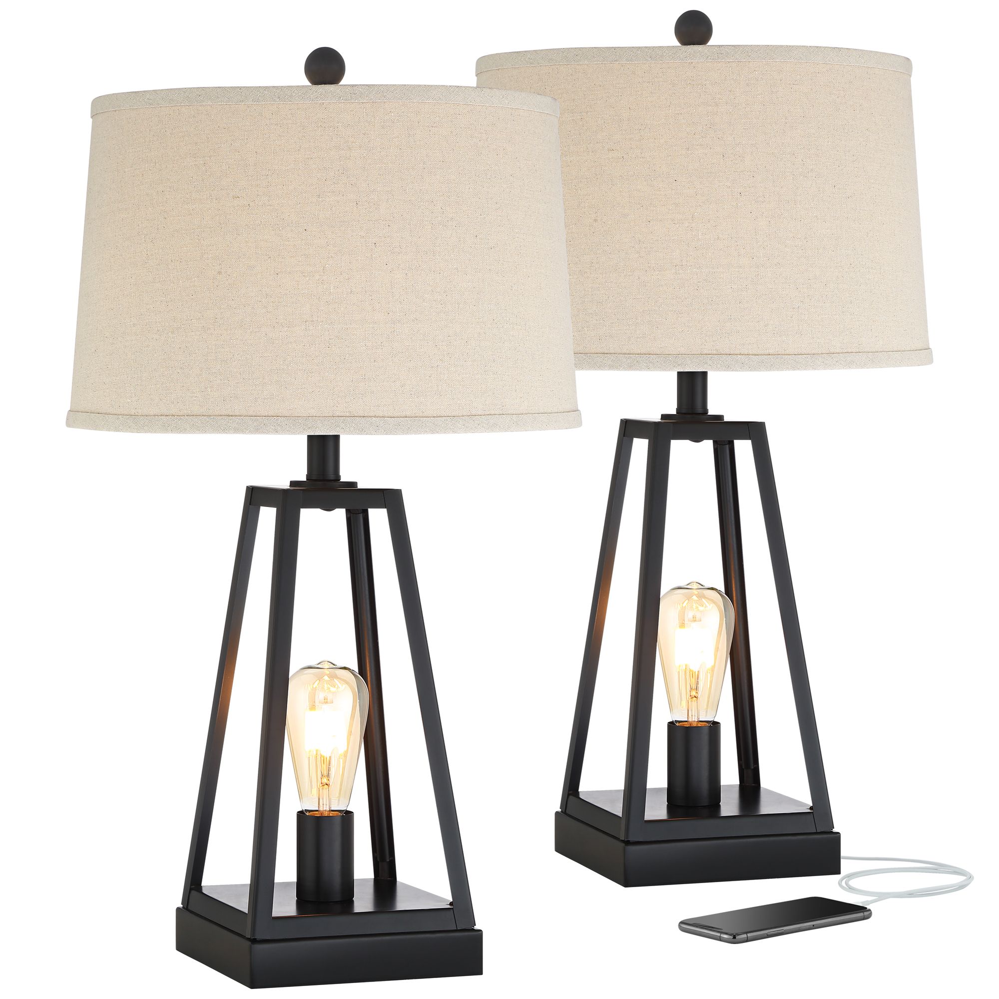 Matthew Modern Rustic Table Lamp With Nightlight Led Caged Brown
