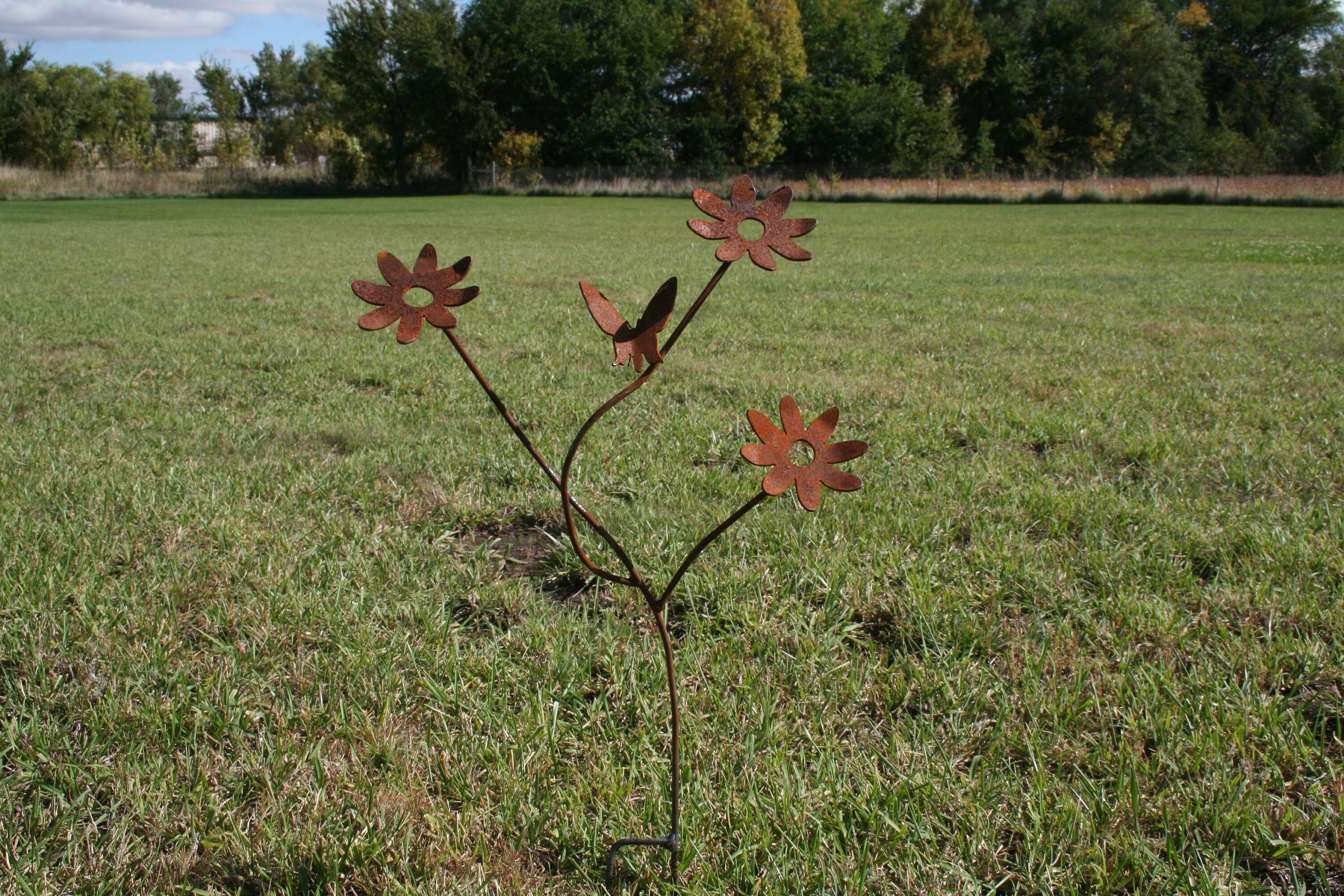 Rustic Cluster Of Flowers Metal Flower Stake Outdoor Flowers