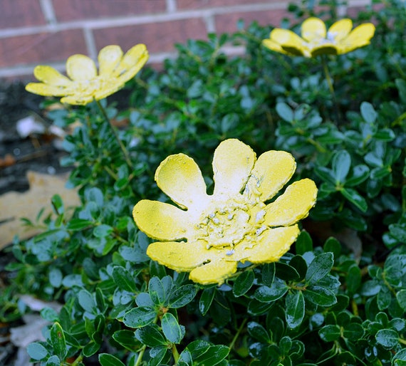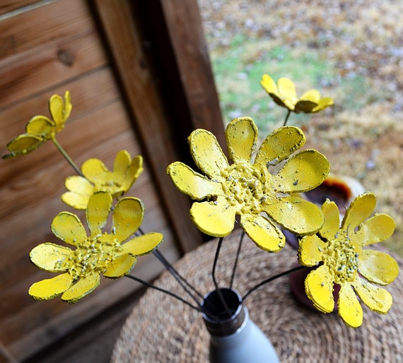 Yellow Daisies Metal Outdoor Flowers Bringing Pretty Floral Etsy
