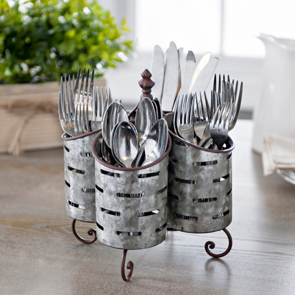 Galvanized Metal Cutlery Caddy Cutlery Caddy Utensil Caddy