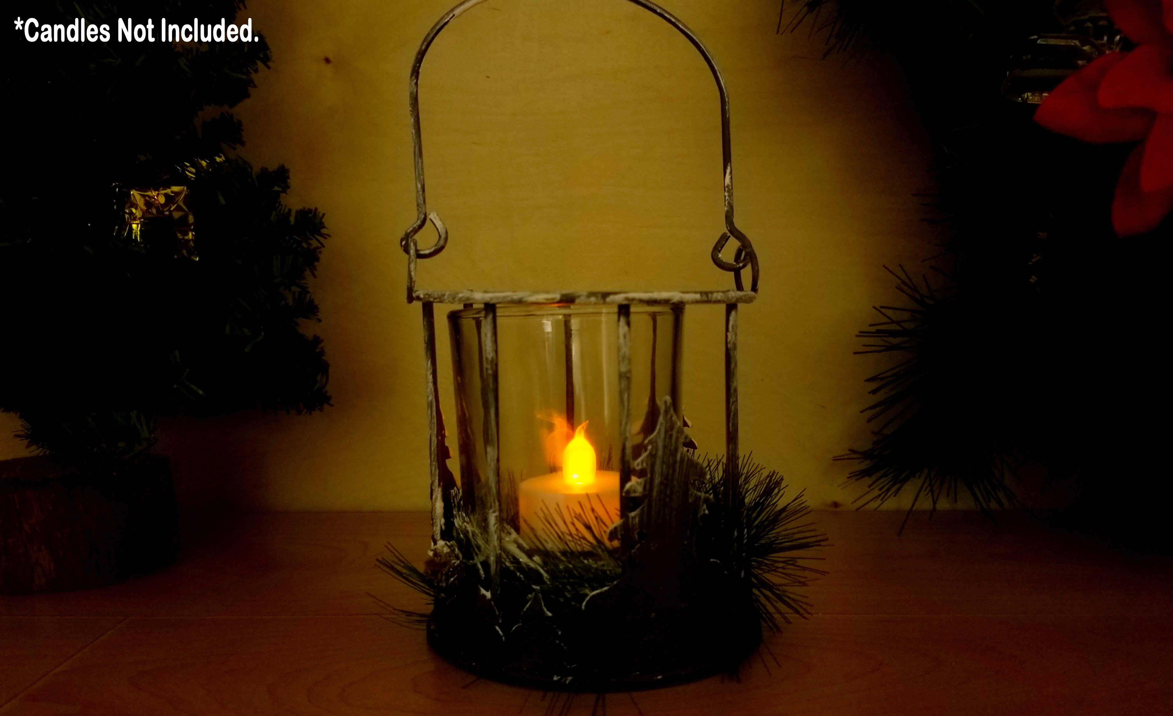 Rustic Home Decor X2013 Evergreen Pine Tree Candle Holder Glass And Metal Candleholder With Brown Metal Pine Trees And Wrapped In White Glittery Greenery X2013