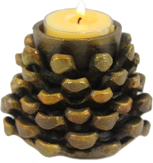 Amazon Com Pinecone Tealight Taper Candle Holder Metal Antique Gold Home Kitchen