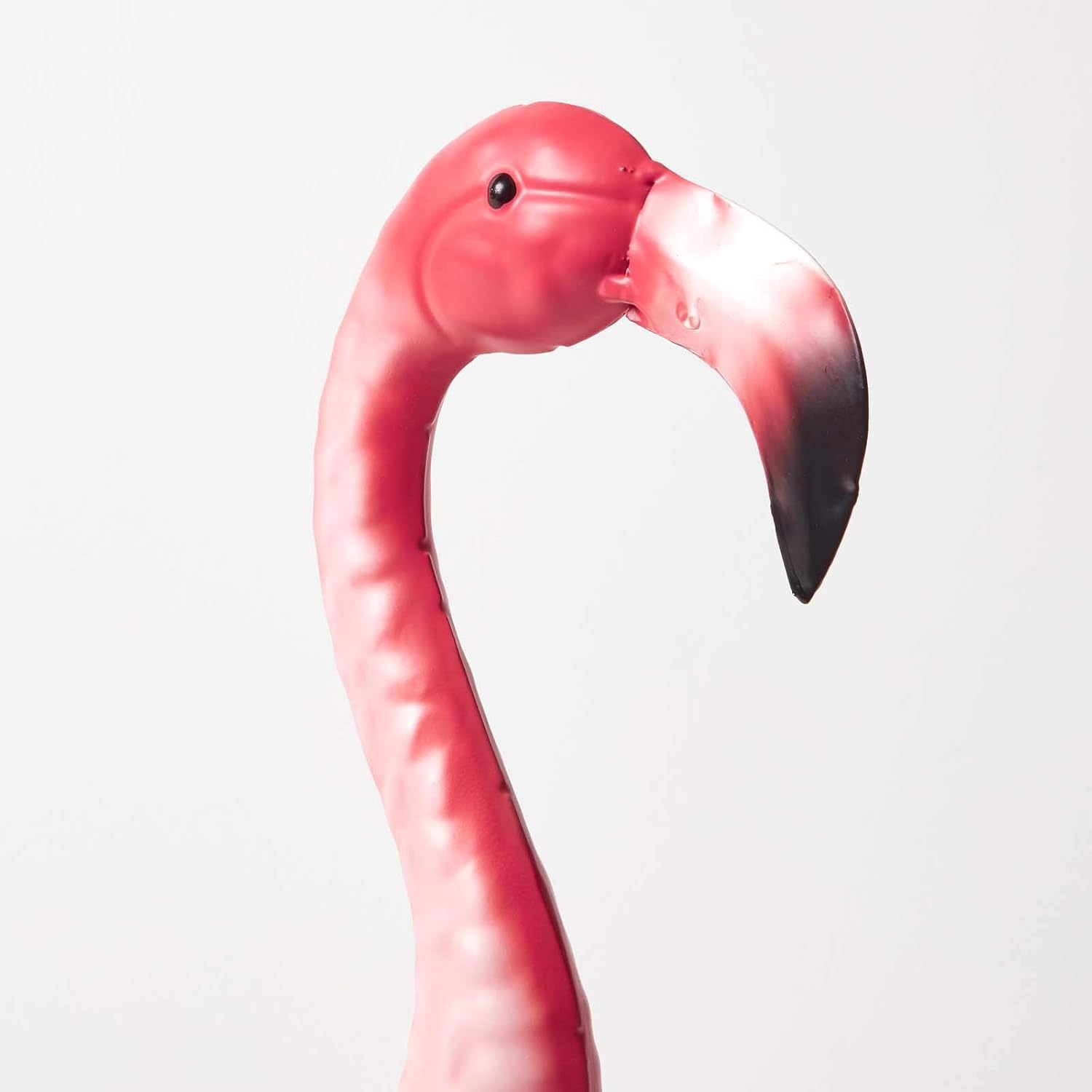 Pink Flamingo Painted Metal Decorative Statue Head Up