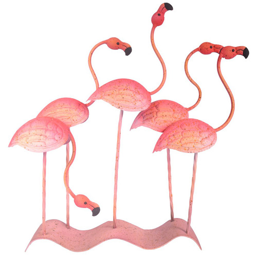 Pink Flamingo Painted Metal Decorative Statue Head Down Woodwaves