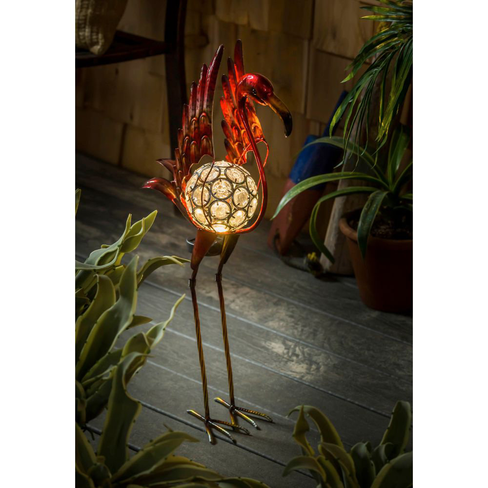 Bayou Breeze Jaron Solar Metal Flamingo Garden Statue Wayfair