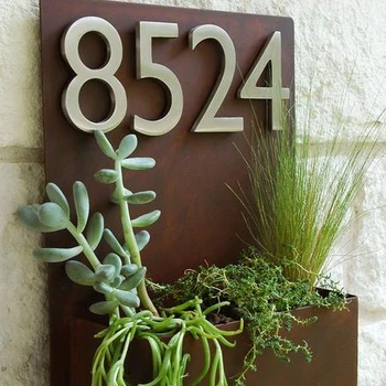 Modern Metal Address Number Wall Planter With Color Succulent