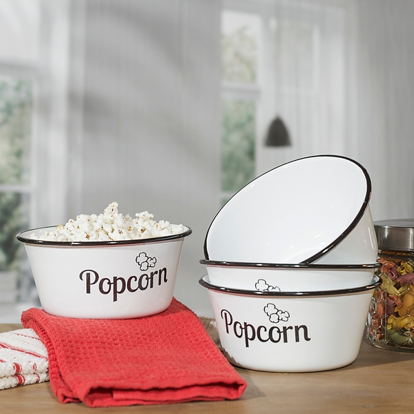 White Metal Enamelware Popcorn Bowls Set Of 4 Kirklands