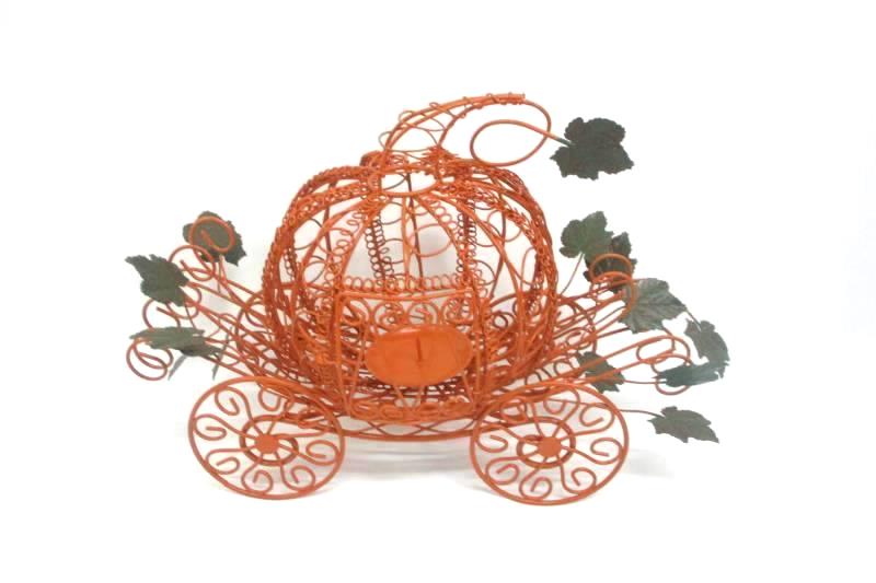Orange Metal Pumpkin Carriage Candle Holder Centerpiece Swedemom