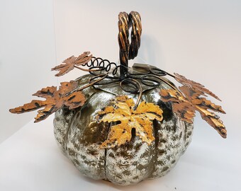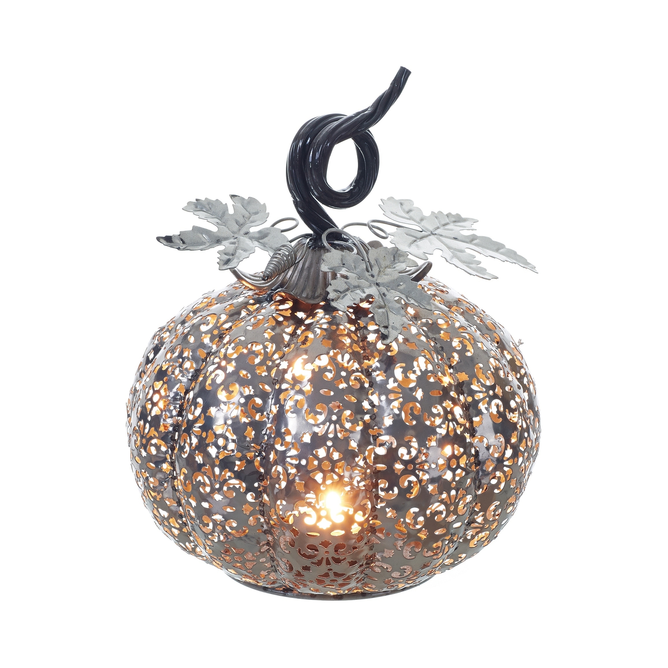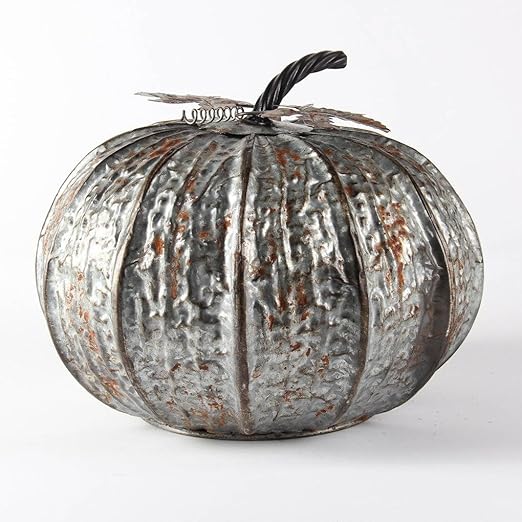 Amazon Com Metal Pumpkin Sculpture Rustic Silver Fall Decor Home Kitchen