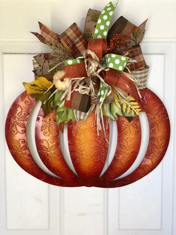 Metal Pumpkin Door Hanger Fall Pumpkin Wreath Fall Wreath Etsy