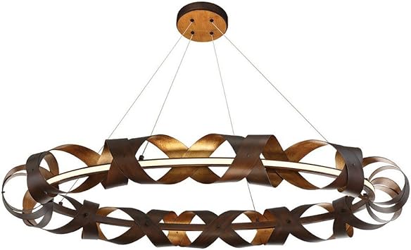 Metal Ribbon Chandelier Closeup Modern Lampshade Copper And