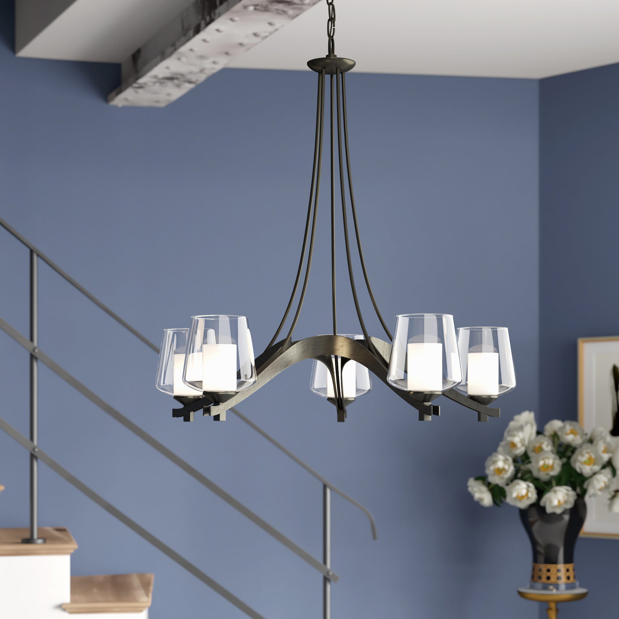 Hubbardton Forge Ribbon 5 Light Chandelier With Diffuser Options