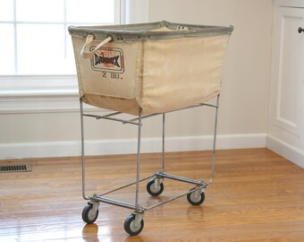 Vintage Folding Laundry Cart Rolling Laundry Basket Etsy