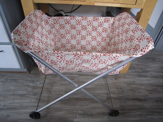Vintage Metal Folding Rolling Laundry Cart Lined Laundry Etsy