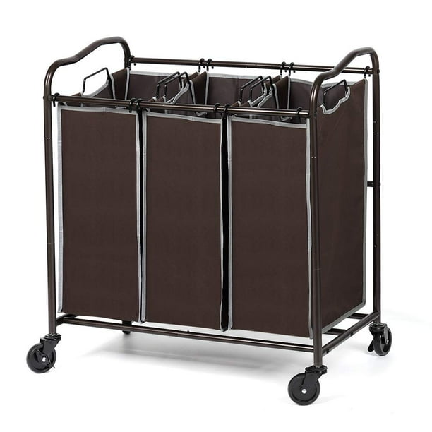 Nex 3 Bag Laundry Sorter Rolling Laundry Hamper Sorter Cart With Removable Bags Dark Brown Nx Hk60 17 Walmart Com Walmart Com