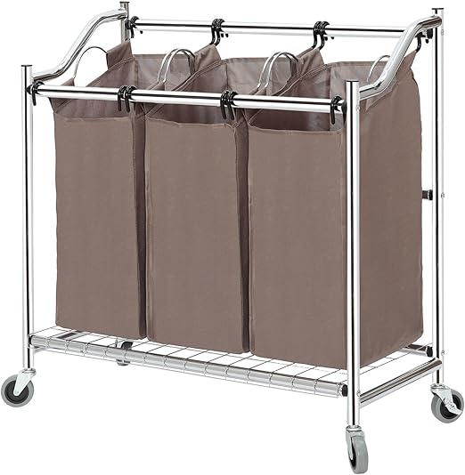 Amazon Com Storage Maniac 3 Section Laundry Sorter Heavy Duty Rolling Laundry Cart For Clothes Chrome Home Kitchen
